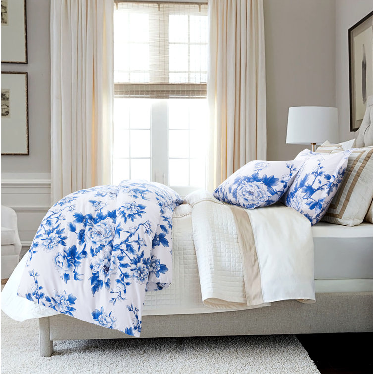 House Of Hampton Reichenbach Porcelain Blue 100 Cotton 400 Tc Duvet Cover Set Wayfair